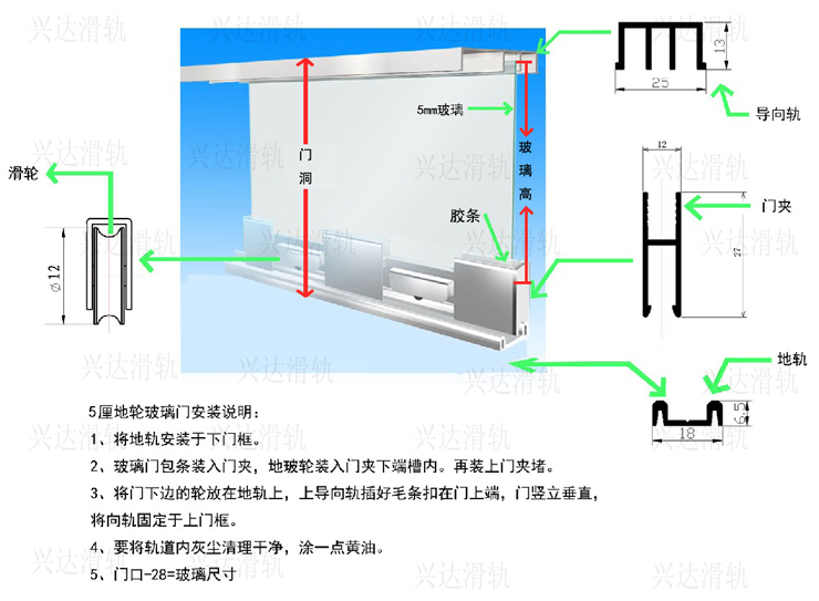 * 表示必填采购:兴达5厘地轮玻璃上下轨套装(门窗滑道)