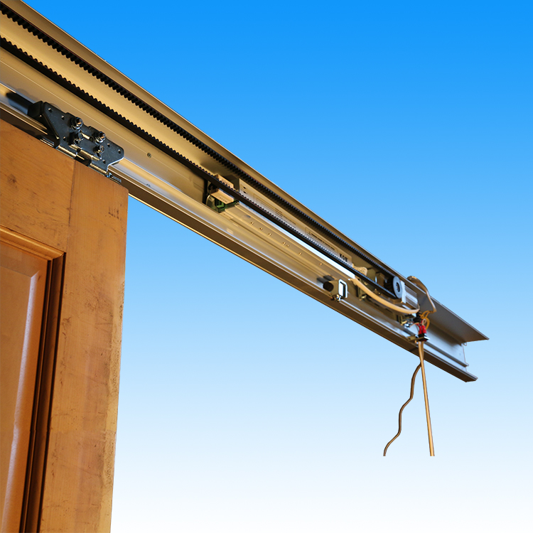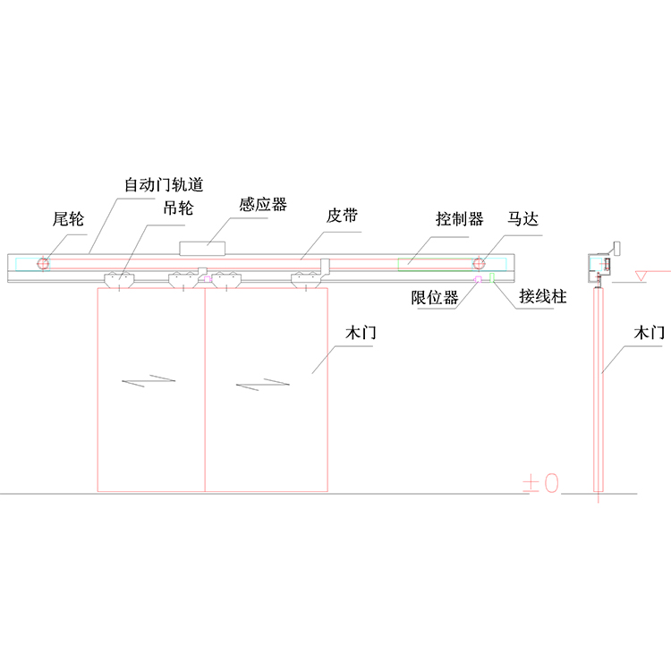 双开门红外电动推拉门轨包括同步电机、减速器、红外自动控制装置及上导轨传送带及机械传动装置,具有承载能力强、噪音低、运行平稳等优点。