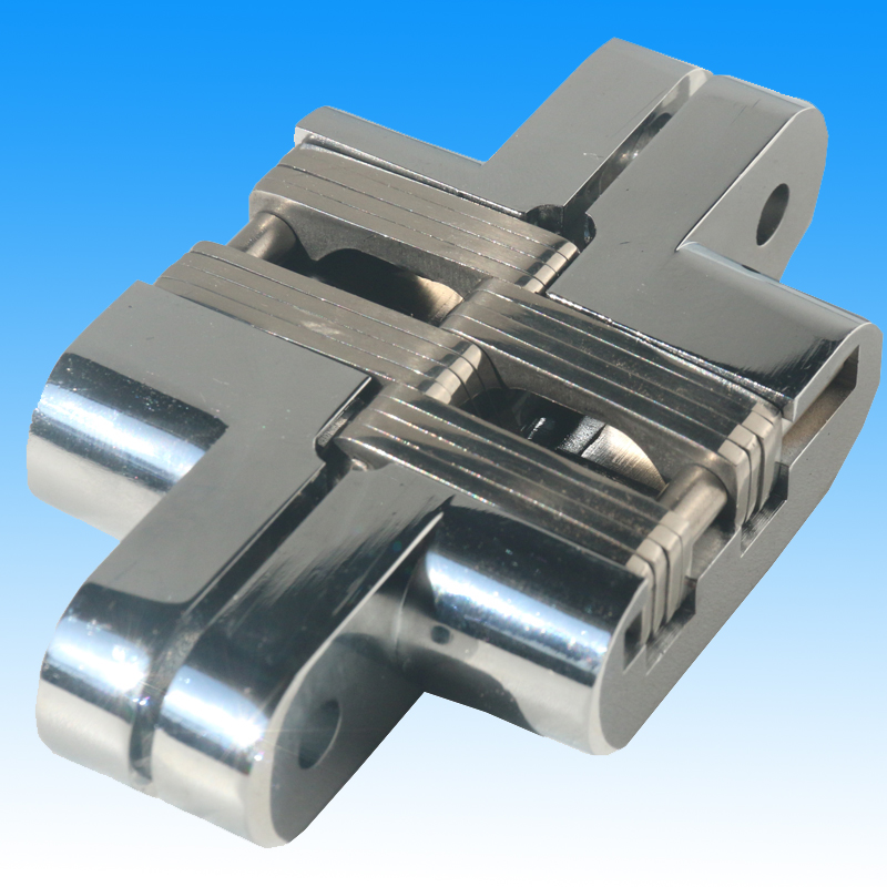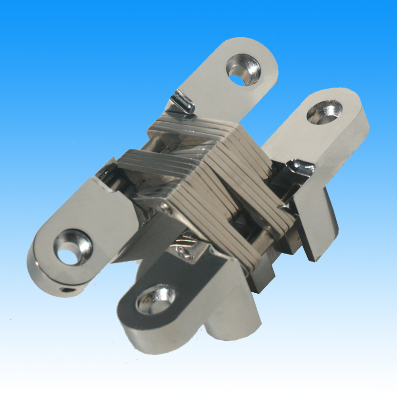本可调暗装合页为锌铝合金,用于双扇/多扇折叠门。开启角度180度,使用直径20mm的开孔器,开槽将内藏合页压入两门之间,要求有3mm间距。采用5×35自攻钉紧固。
