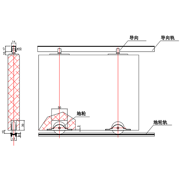 重型地轮与仿钢地轮轨配套使用。套件包含上导向轮和地轮各两只,地轮安装时需在门底部开槽,嵌入门中。轮套为高强尼龙,轮套内装有进口轴承。运行平稳、滑动自如。双车承重80公斤。适用于较重型推拉门使用。